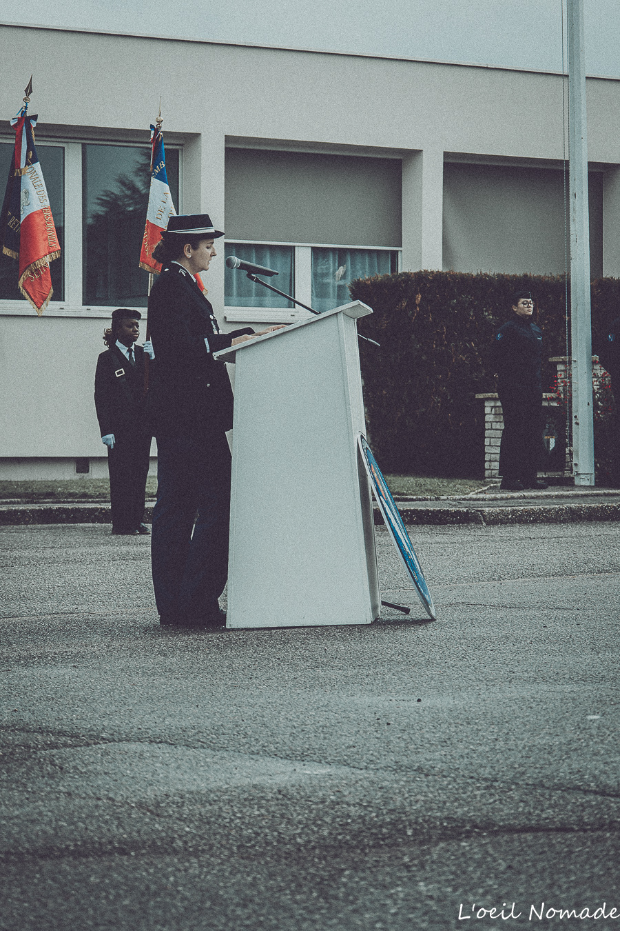 La cérémonie officielle marque le véritable lancement de la promotion : levé des couleurs, le passage du fanion, prises de parole et discours de la présidente de l’association.