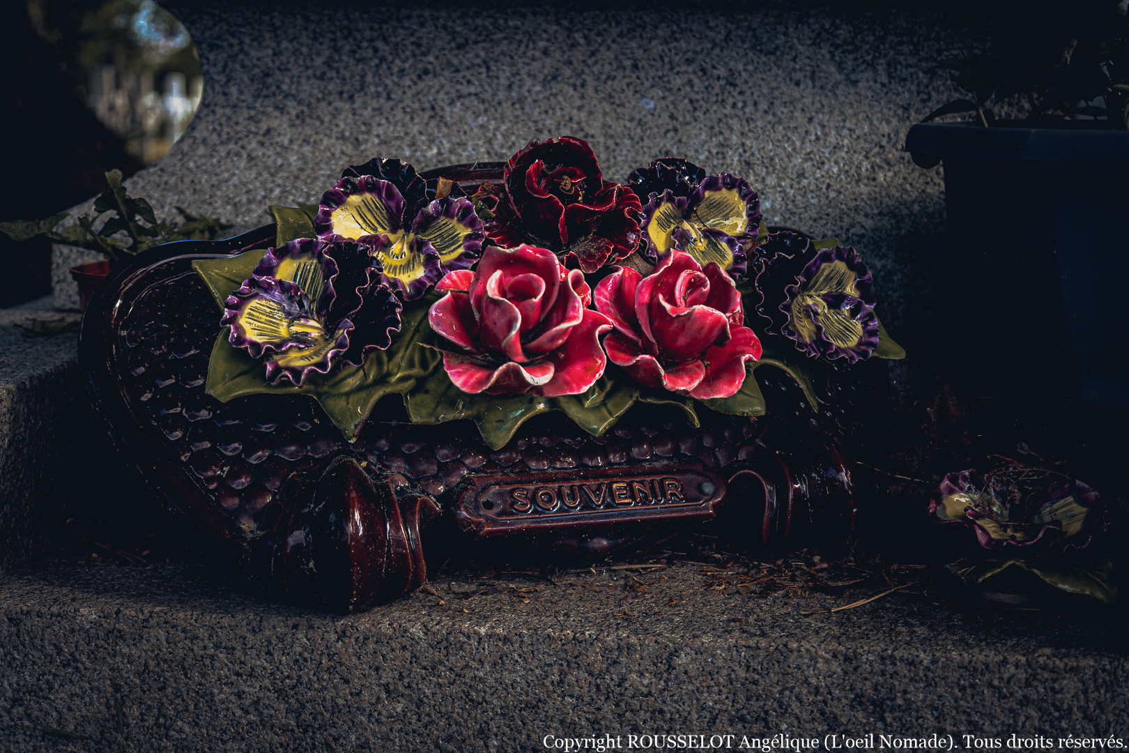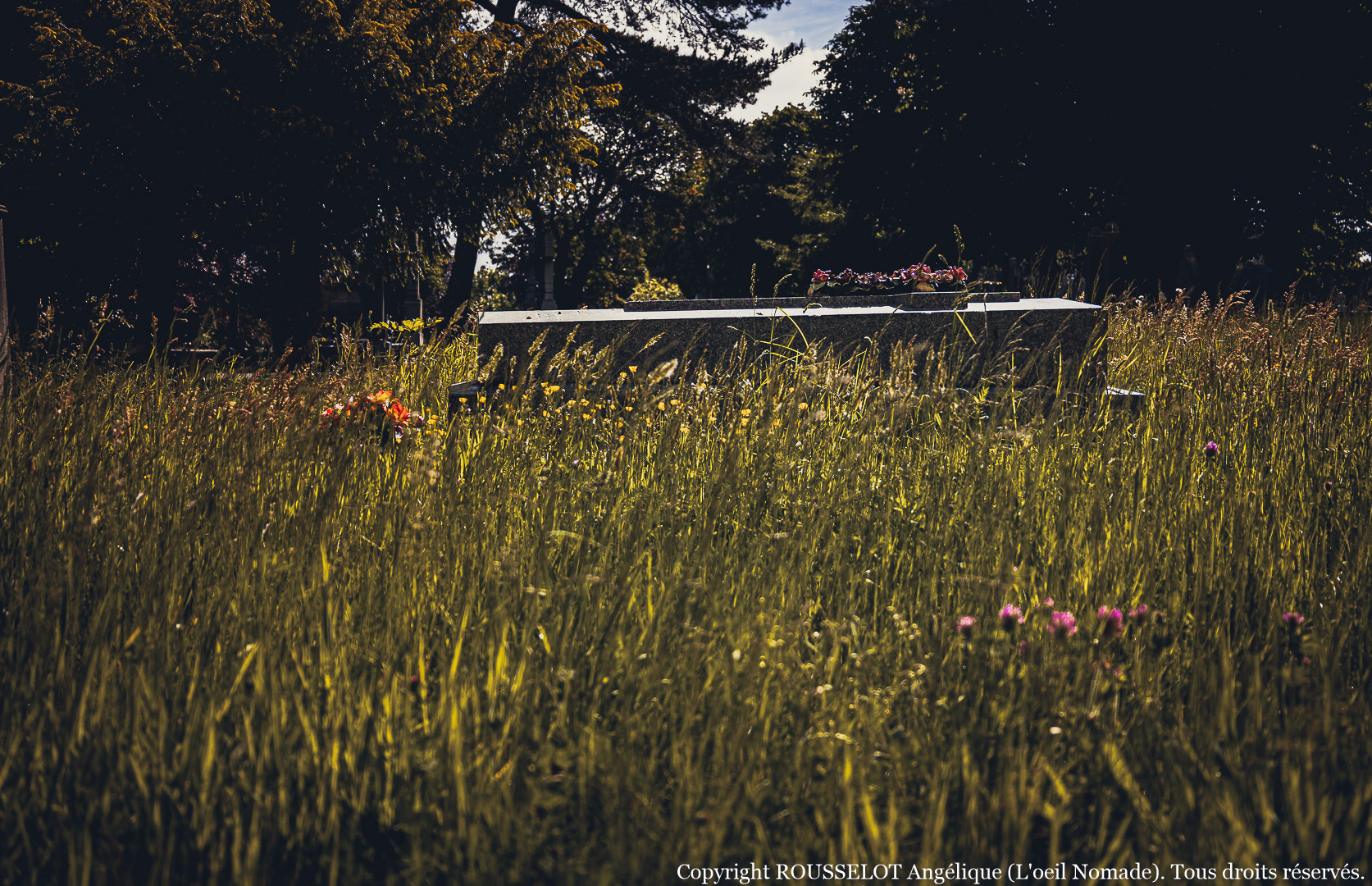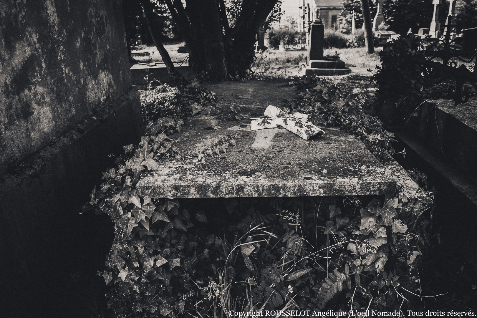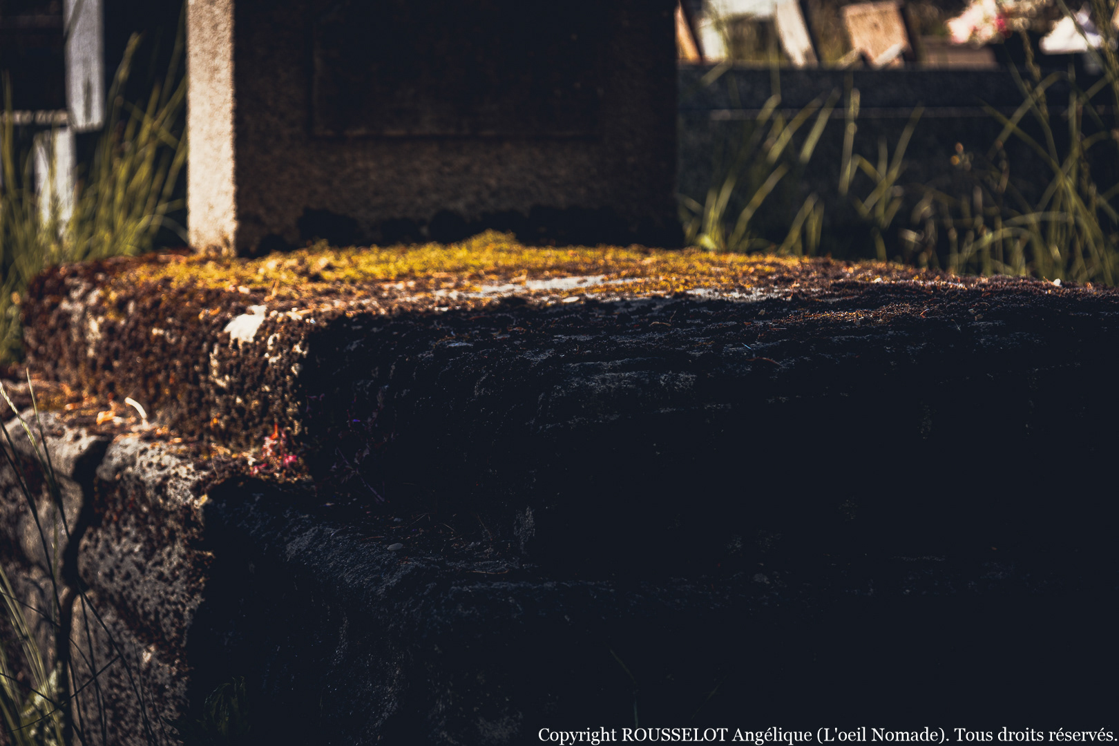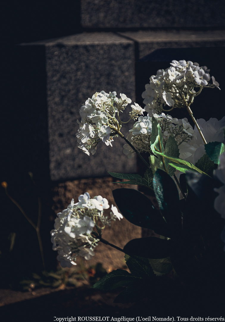 Juste des angles, des matières, des détails qui racontent plus que les mots. Un rayon de lumière sur une pierre fendue. L’ombre d’un arbre qui glisse lentement. Des gestes d’adieu figés dans la pierre.