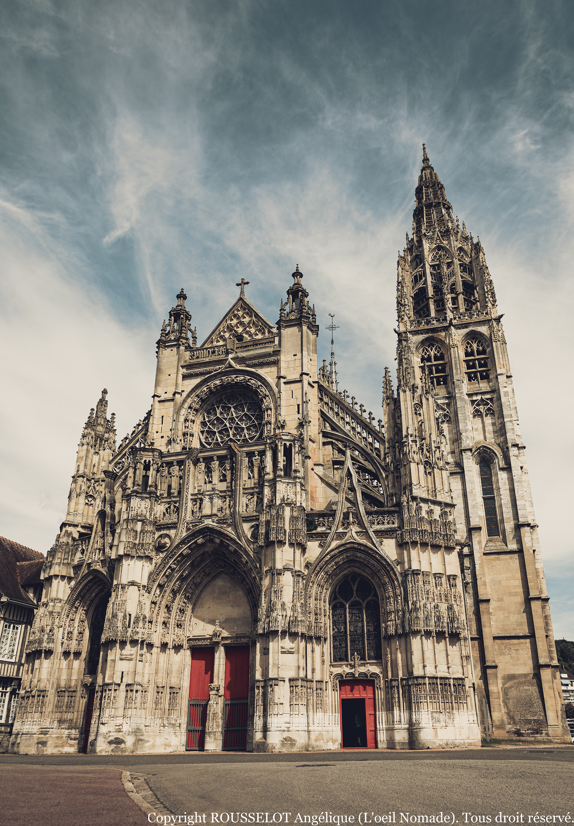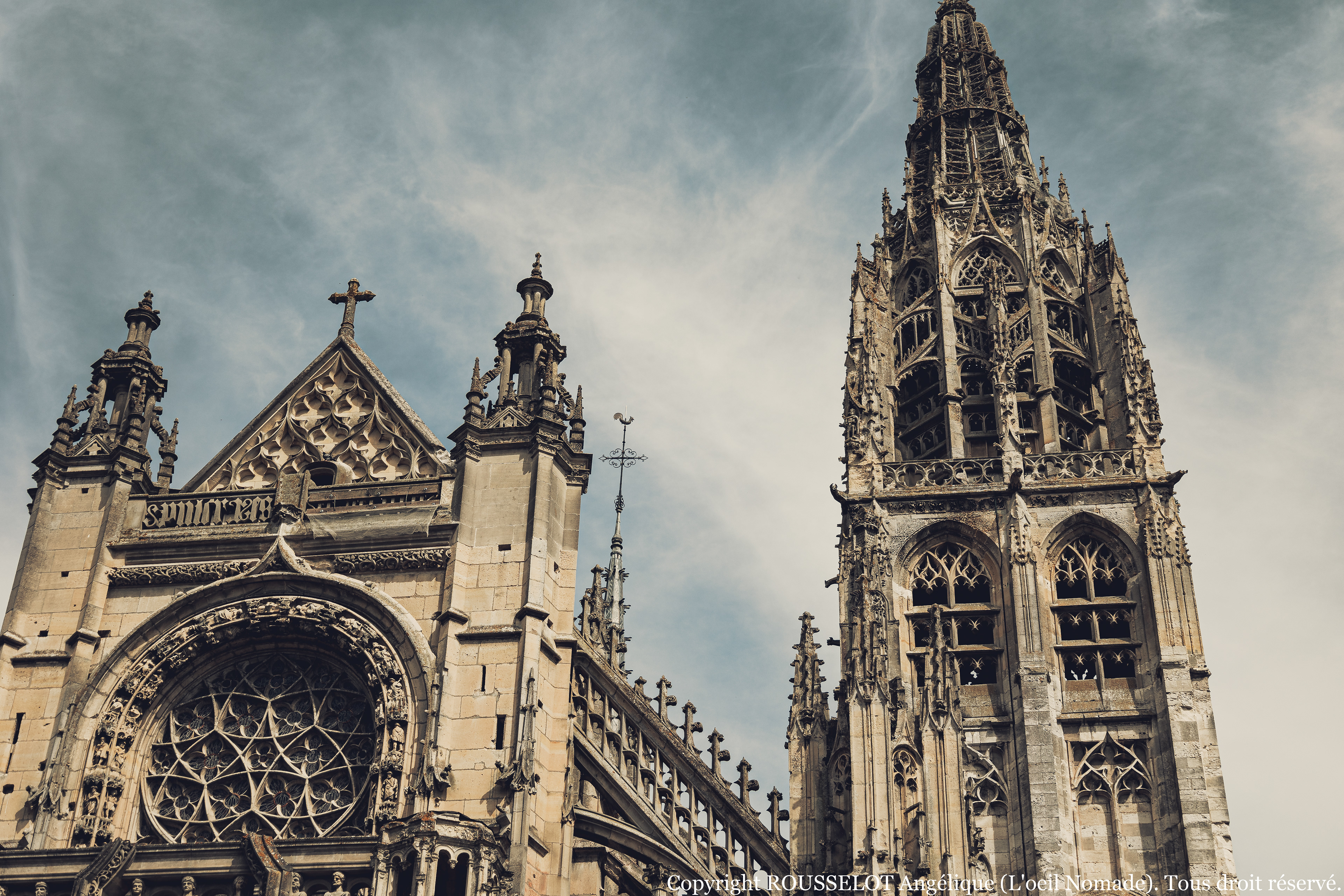 Sa construction s’est étalée du XIIIe au XVIe siècle, ce qui explique la diversité des styles présents dans l’édifice. Le chœur et le transept datent du XIVe siècle, tandis que la façade occidentale, richement décorée, fut achevée au début du XVIe siècle. Le clocher, haut de 55 mètres, s’élève avec élégance au-dessus de la ville, visible depuis les quais de la Seine.