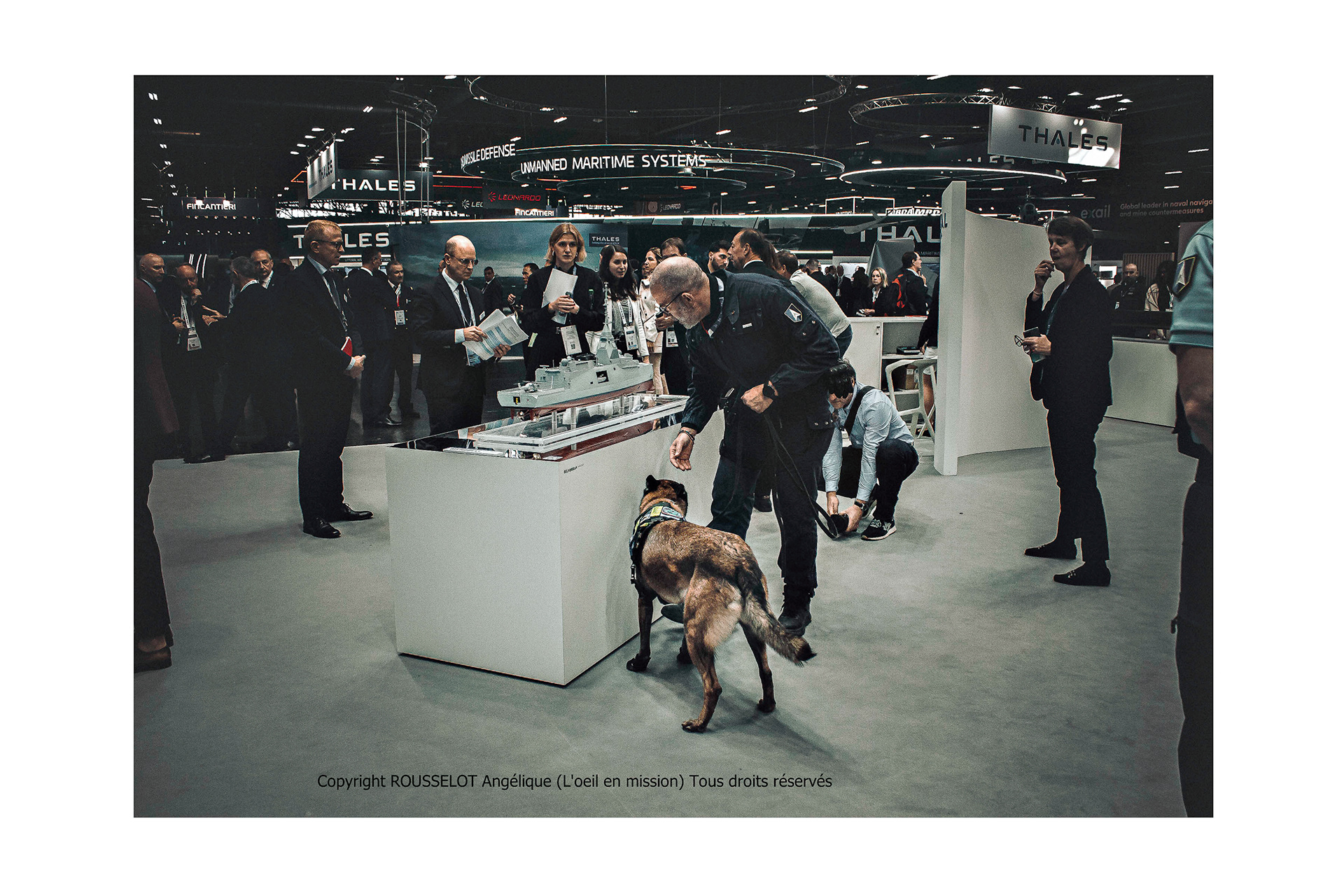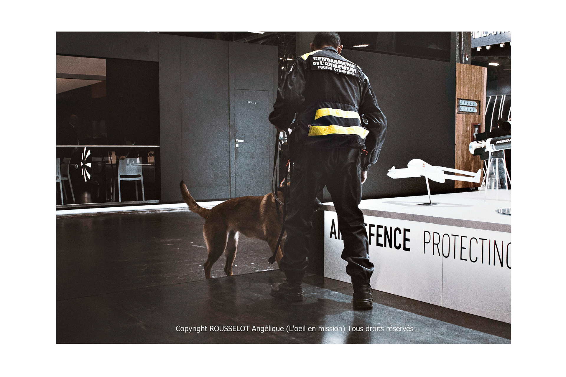Avant la visite du Ministre des Armées, les agents cynophiles de la Gendarmerie de l'Armement procèdent à une opération de "dépoussiérage" dans les zones prévues pour l'accueil. Cette mission de sécurisation consiste à inspecter minutieusement les espaces à l'aide de chiens spécialisés dans la détection d'explosifs, pour garantir une sécurité optimale. Les équipes cynophiles analysent chaque recoin, identifiant et neutralisant tout risque potentiel, afin d’assurer une protection sans faille des lieux.