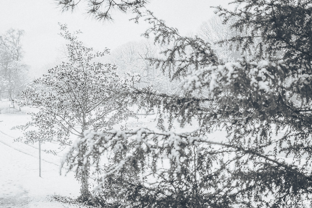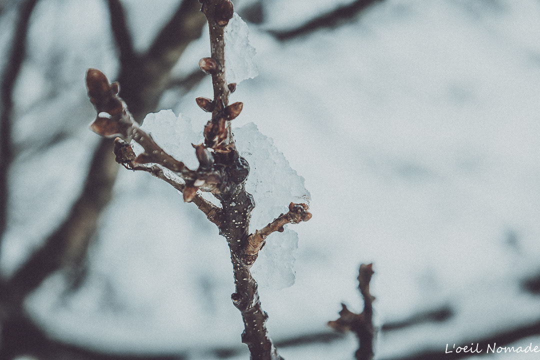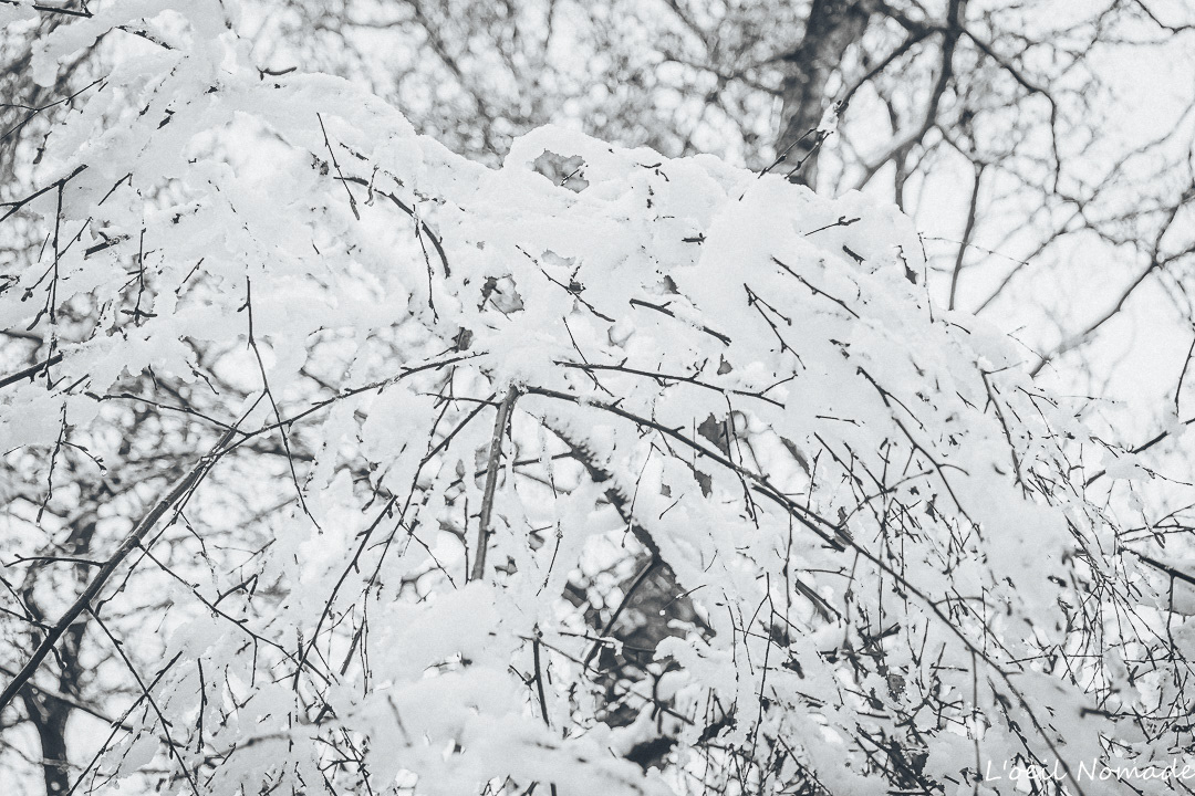 Les contrastes s’effacent, les formes se simplifient, et chaque détail prend une importance nouvelle : une trace dans la neige, une branche chargée de blanc, un chemin qui disparaît.