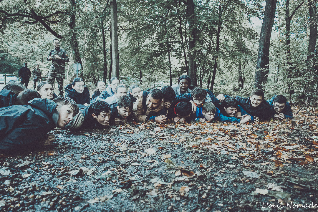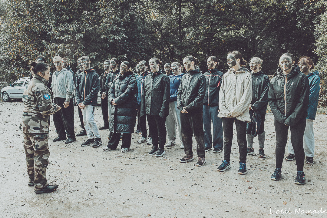 Avant d’entrer dans le vif du sujet, les cadets ont parcouru plus d’un kilomètre de marche et de course pour rejoindre le site, précédé d’un échauffement intensif : squats, pompes, roulades et exercices de gainage pour préparer le corps et l’esprit.