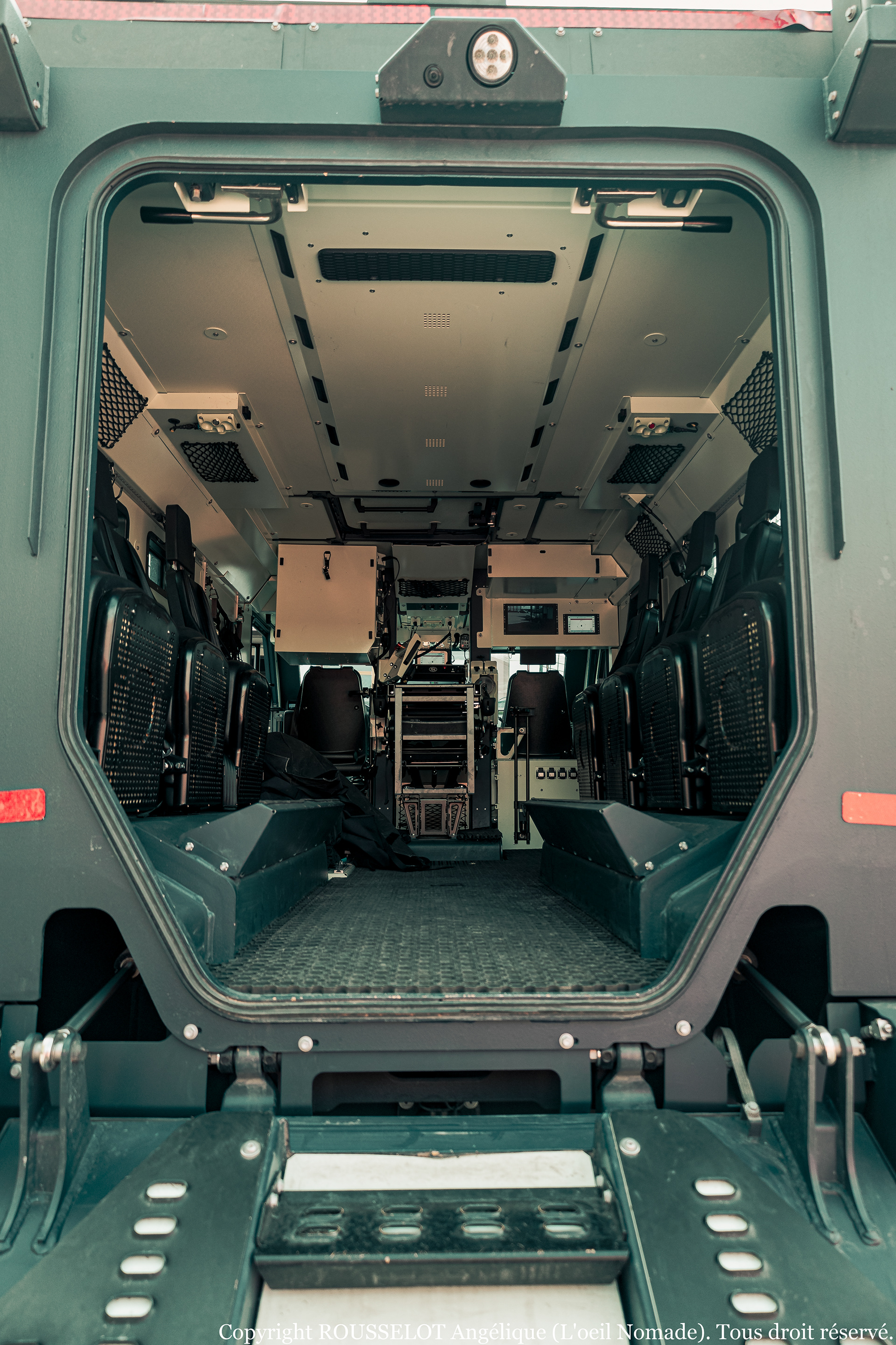 Le Véhicule Blindé Moyen d'Observation équipé de grilles anti-émeutes, quant à lui, a illustré la technicité et l’adaptabilité de la Gendarmerie Mobile face aux menaces modernes.