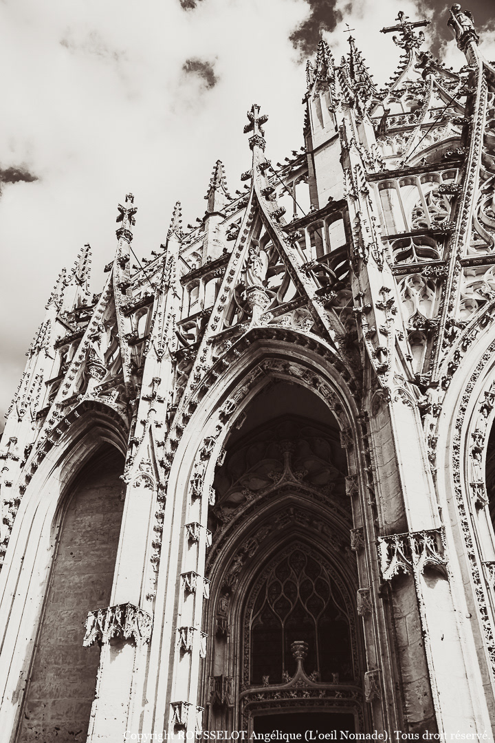Avec sa façade en dentelle de pierre, toute en courbes et détails ciselés, elle fait dans le flamboyant. Du vrai. Du brut. Un truc à la fois fragile et imposant. Elle en impose sans forcer, posée là depuis le XVe siècle, au cœur d’un quartier qui a connu la peste, les artisans, les guerres et la vie qui reprend.