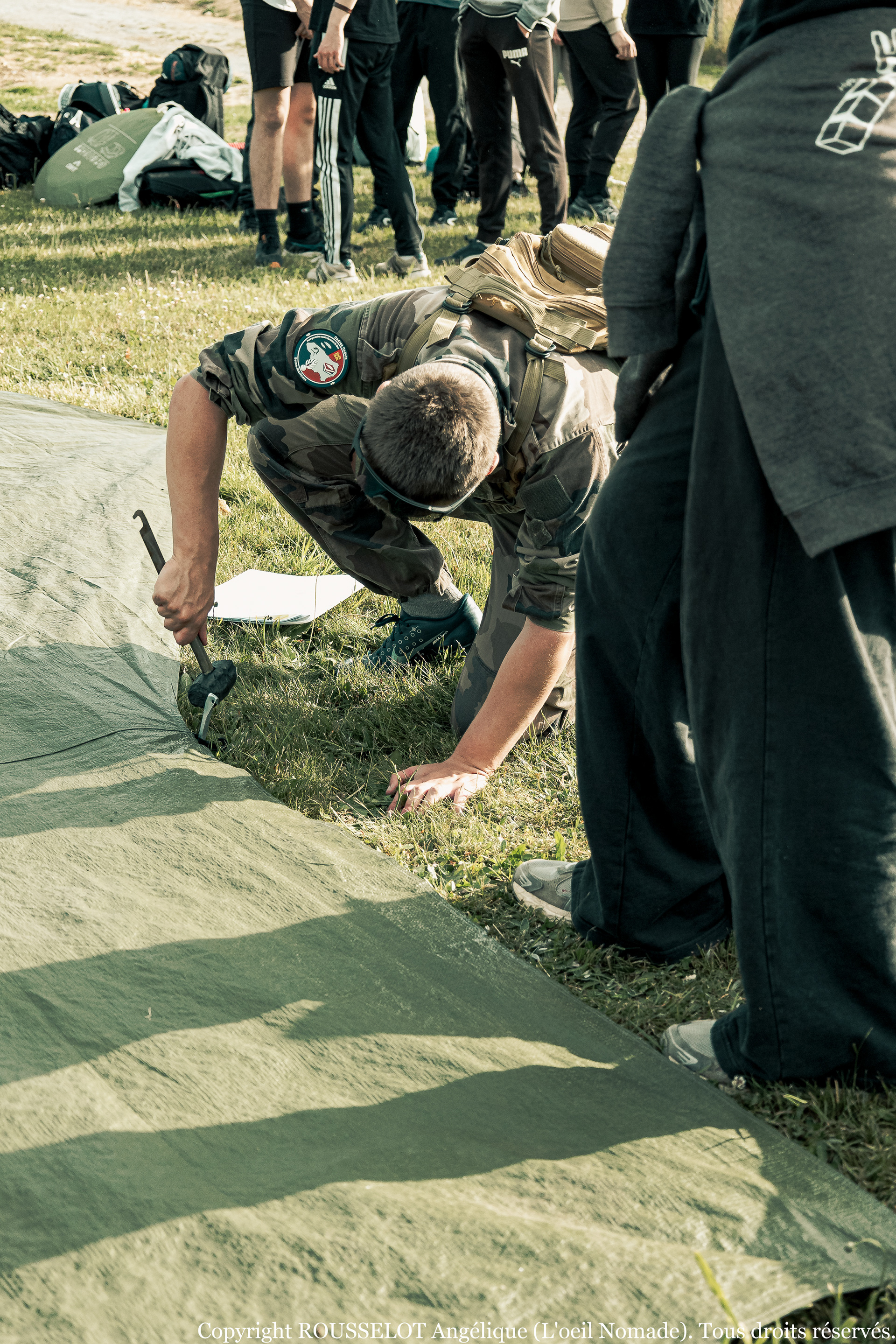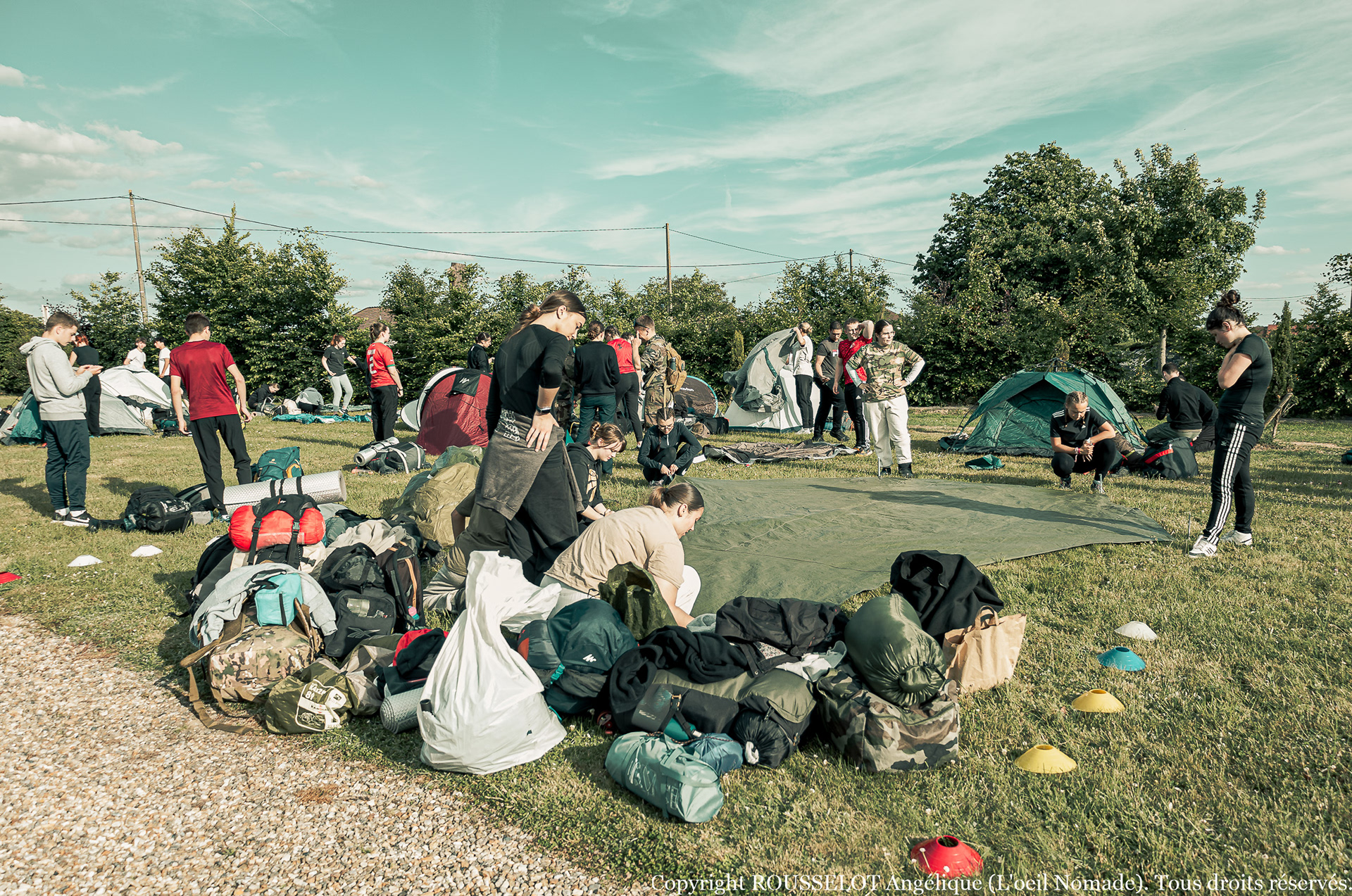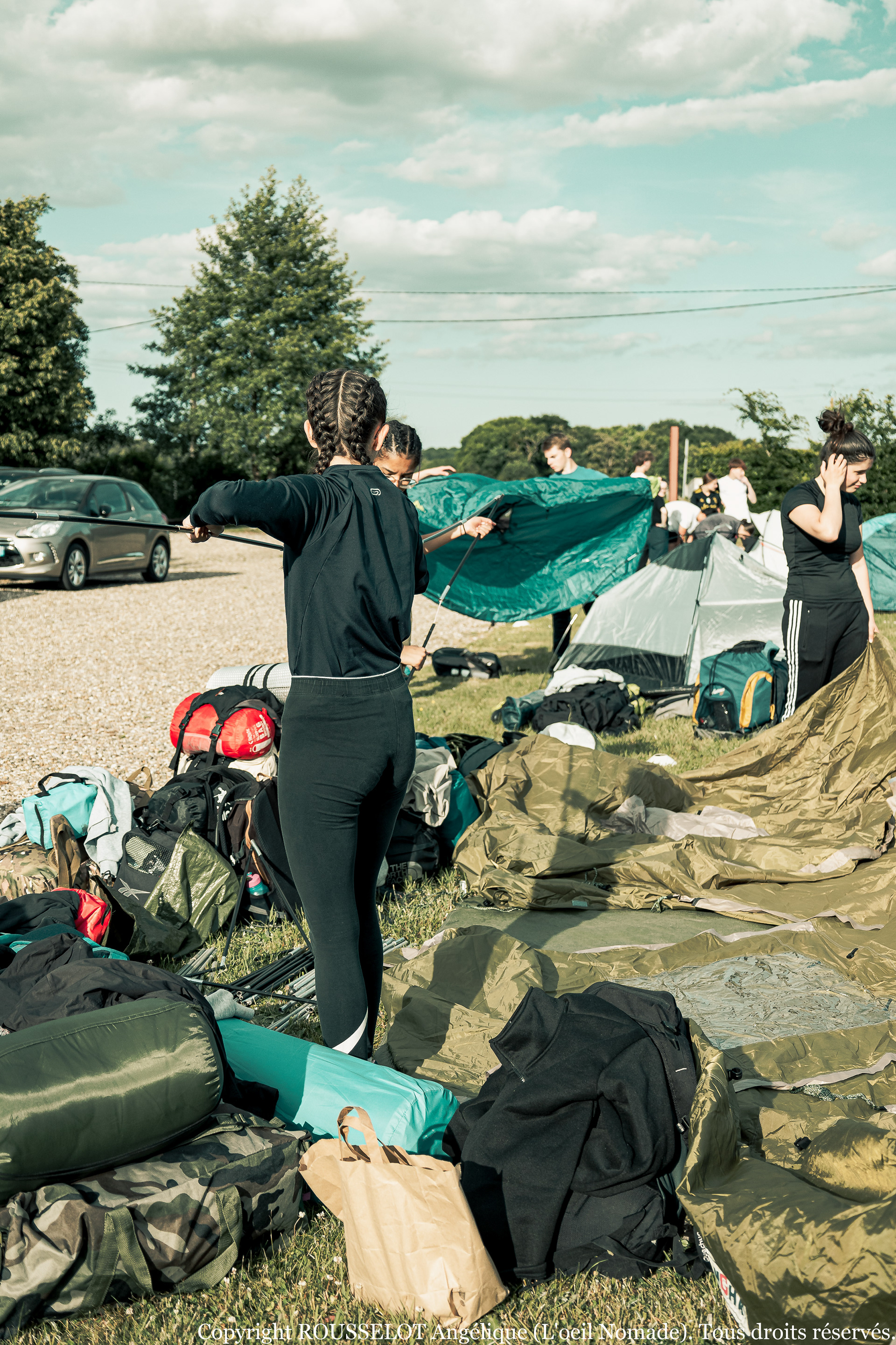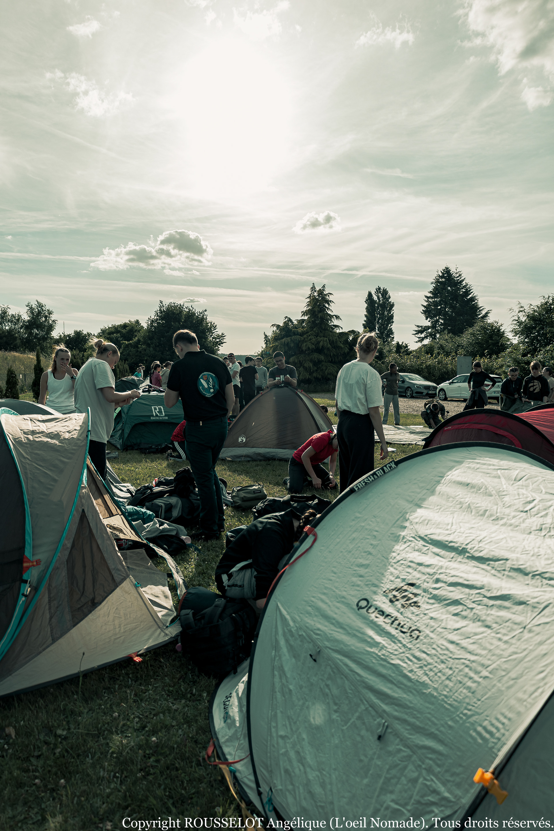C’est là que tout commence. Le sol, les sardines, les bras qui montent les tentes sans trop se parler. L’efficacité avant le confort. Ça se cherche du regard, ça comprend vite. Pas de luxe, juste l’essentiel. Et déjà une dynamique de groupe qui s’installe, discrètement.