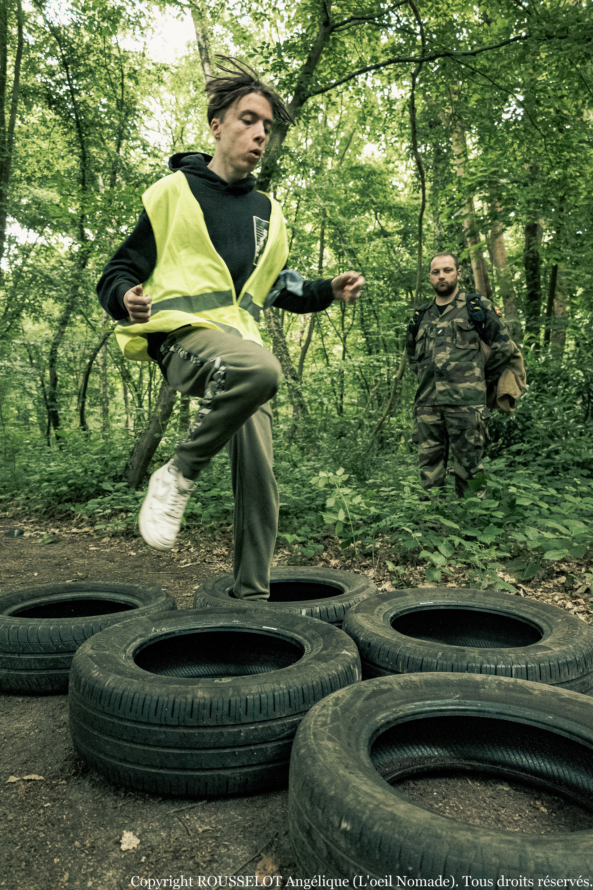 Ils deviennent burgers, rampent dans l’herbe, s’accrochent aux cordes, disparaissent dans les buissons, tiennent, tombent, recommencent.